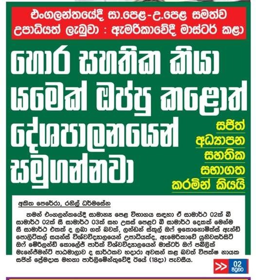විපක්ෂ නායක සජිත්ට සහ තවත් අයට අධ්යාපන සුදුසුකම් ප්රශ්න කරමින් ජාතික ජන බලවේගයේ නායකයන් අපහාස කළේ ආණ්ඩුවක් විදියට. Continue Reading